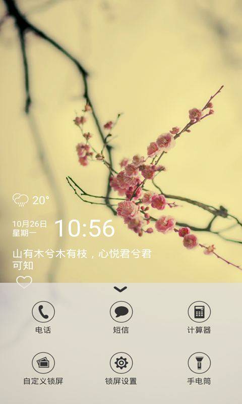 閿佸睆锛氭墜鏈洪攣灞忕晫闈紝灞曠ず绮剧編澹佺焊鍜岄厤璇嶏紝骞舵樉绀烘椂闂达紝鏃ユ湡锛屽ぉ姘旓紝鐩告満绛夛紝鍙偣璧烇紝鍙垎浜紝渚挎嵎鎿嶄綔锛岀偣浜儕鍠滐紱