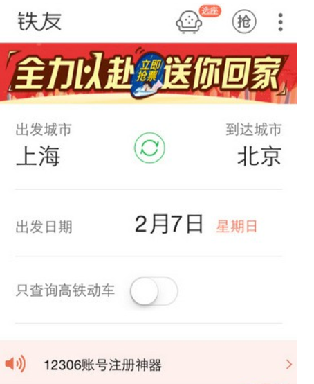 閾佸弸鐏溅绁12306鎶㈢エ鏄竴娆炬墜鏈烘姠绁ㄦ湇鍔¤蒋浠讹紝鏈変簡閾佸弸鐏溅绁12306鎶㈢エ鍦ㄤ篃涓嶇敤鎷呭績涔颁笉鍒扮エ锛屼篃涓嶉渶瑕佸湪鍘昏喘绁ㄥぇ鍘呮帓闀块槦浜嗭紝杞绘澗缁欎綘鎶㈠埌浣犳兂瑕佺殑绁ㄣ