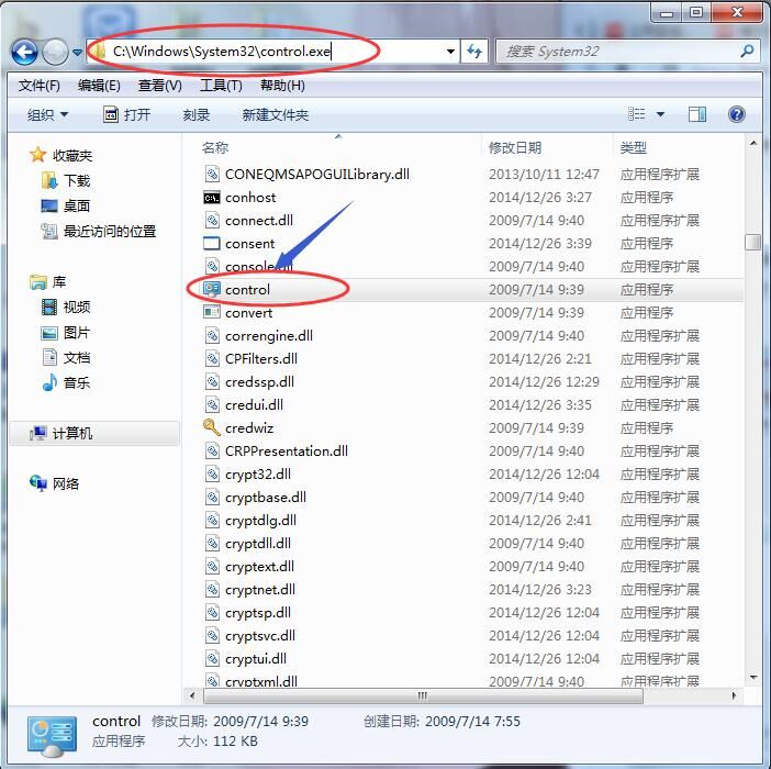 鏂规硶鍥涳細鎵撳紑绋嬪簭鏂囦欢锛屽湪杩欎釜鐩綍锛欳:\Windows\System32涓瓨鏀剧郴缁熺殑寰堝宸ュ叿锛屽悓鏍凤紝鎴戜滑鍦ㄨ繖閲屼篃鍙互鎵惧埌鎺у埗闈㈡澘杩欎釜宸ュ叿锛屽涓嬪浘鎵绀猴紝“control.exe”灏辨槸鎺у埗闈㈡澘锛屽弻鍑昏鏂囦欢灏卞彲浠ユ墦寮鎺у埗闈㈡澘锛