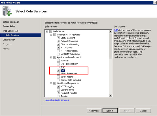 3. 鐐瑰嚮涓嬩竴姝ワ紝鍦ㄩ夋嫨瑙掕壊鏈嶅姟鏃讹紝鍕鹃“CGI”锛屽涓嬪浘鎵绀猴細