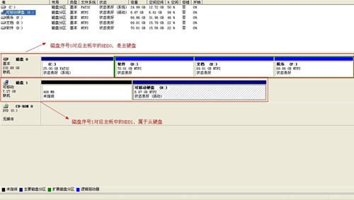 一般表现是磁盘0和磁盘1,磁盘2等等;这里显示几个就是主板上挂载了几块硬盘。如图: