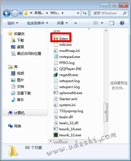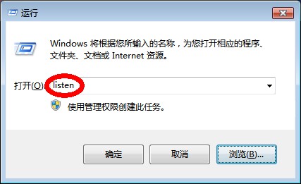 第三步:大家按住键盘上的Window+R弹出“运行”对话框,在“打开“中输入“listen”,再单击“确定“按钮,软件即可运行,如下图: