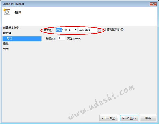 继续设置触发时间详细选项。继续点击“下一步“按钮。