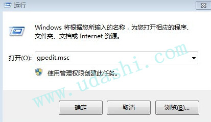 Win7系统下无法访问局域网打印机(登录失败:未知的用户名或密码错误),解决办法为:点击“开始—运行”(或Windows+R组合键),弹出运行对话框,然后输入“gpedit.msc”,点击“确定”。(如下图所示)