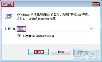 一、网络问题。同时按住键盘上的Win+R键,弹出“运行”对话框,在“打开”一栏输入cmd,再单击“确定”按钮,如图: