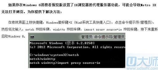 二、系统问题。Win8中Metro IE下网页无法打开,大家不妨先采用下图所描述的方法试试: