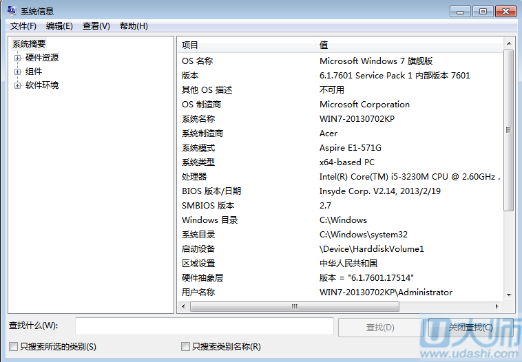 1.点击 开始—所有程序—附件—系统工具—系统信息;