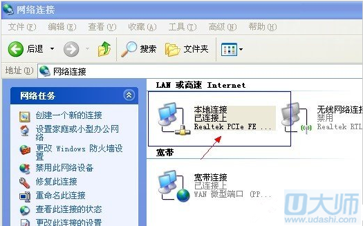 1.网上邻居—查看网络连接—找到本地连接,如图: