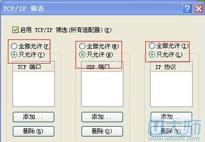 3.在这个窗口里,大家可以不允许任何端口,或者添加自己需要的端口,以防止黑客入侵,如图: