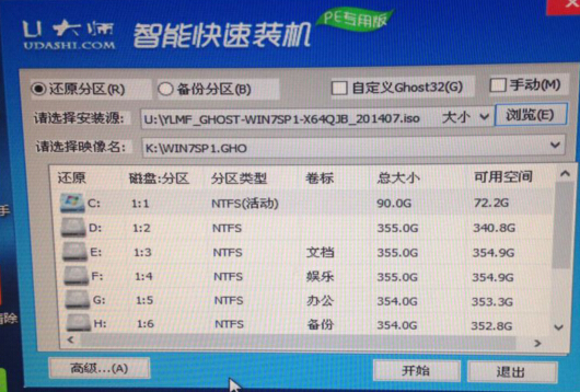 3、打开u大师快速智能装机选择win7,win8或者win10逐个安装就可以了(安装的盘符为CDE)。