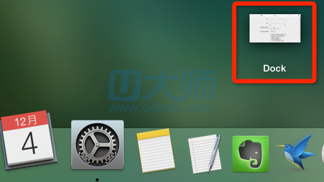 1.首先不难发现系统偏好设置小化时是在右侧: