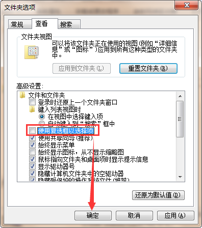 3.在查看下面将使用复选框以选择项前面的小勾去掉即可: