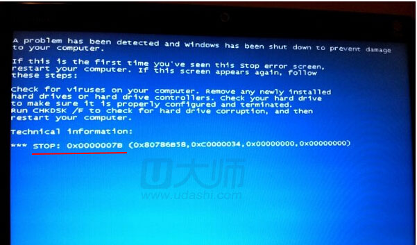 点击查看:宏基笔记本进入u大师pe蓝屏0x000000B4的解决办法