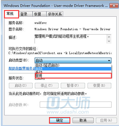 3.在新弹出的窗口中,点击“常规”选项卡,然后在下方的启动类型中选择“禁用”,完成后点击“确定”即可: