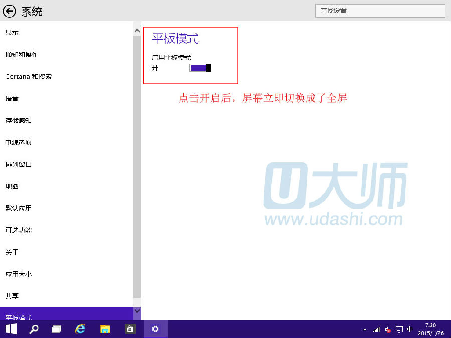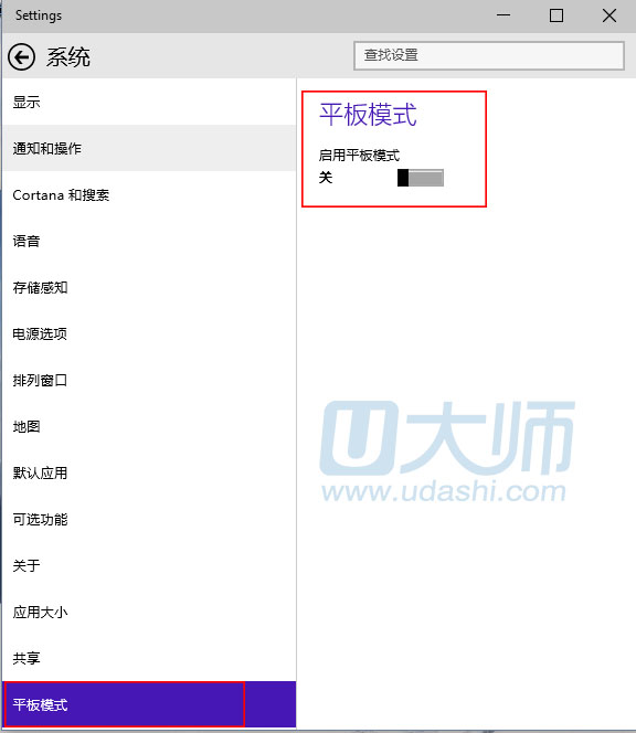 2.再找到“平板模式”,点击开启即可: