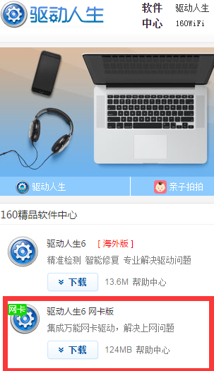 确定了驱动问题之后,我们就需要使用下载驱动更新就可以了,用我们可以连上网的设备,比如手机或者其他设备,下载驱动人生活着驱动精灵网卡版,下载完成之后放到电脑上安装就会自动装上驱动,装完之后重启,就可以顺利连上网络。