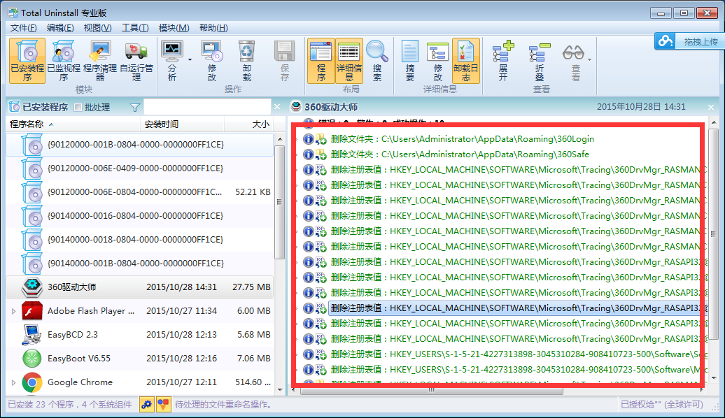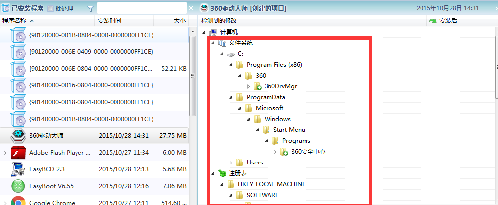 打开已安装程序就可以看到我们电脑上已经安装的程序,随意选中一个分析,这里我以360驱动大师为例: