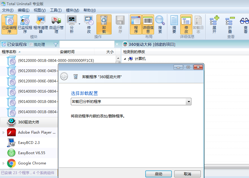 选择之后,软件会自动分析软件安装时所创建的所有文件包括注册表: