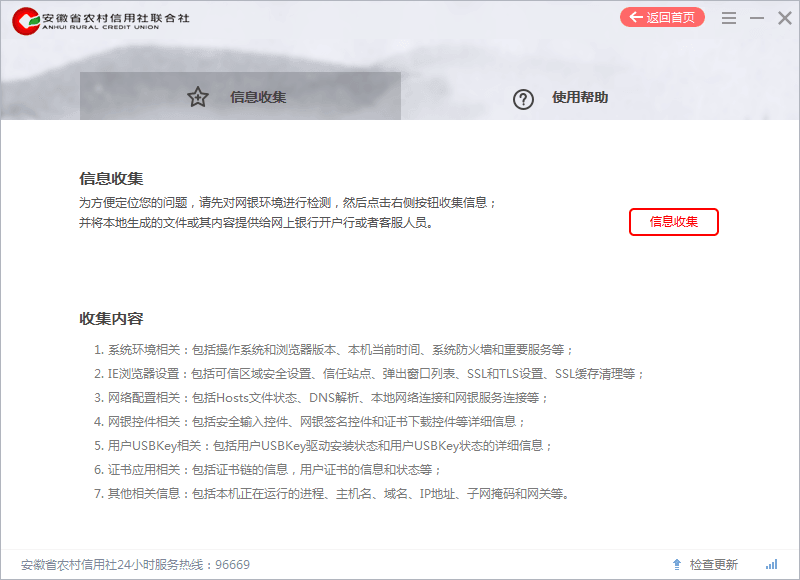 安徽省农村信用社网银助手是一款优秀的网银辅助工具,主要用于帮助安徽省农村信用社用户进行网上银行安全环境监测,可以一键修复。全面监测,一键修复,让上网环境更安全,网上交易更放心!