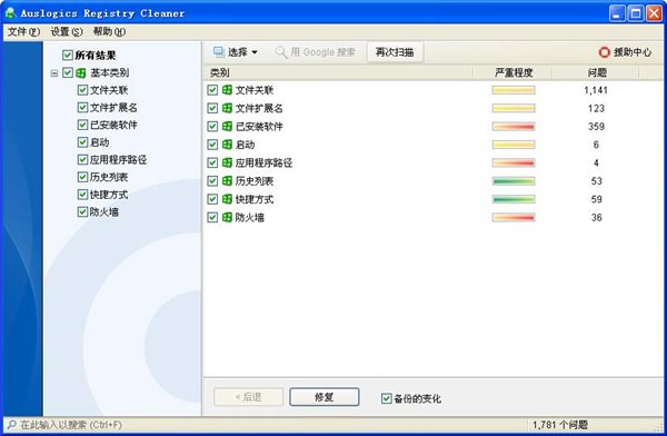 Argente Registry Cleaner是一款免费安全的注册表清理软件。它能安全,高效的清除和修复注册表中的问题。主要检测内容:快捷键,ActiveX & COM,共享文件,文件扩展,字体,历史纪录,开始菜单,自启动项,程序路径,系统服务。