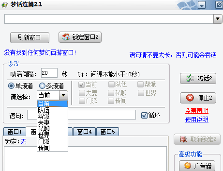 锁定窗口,刷新窗口,设置喊话间隔,填写喊话语句