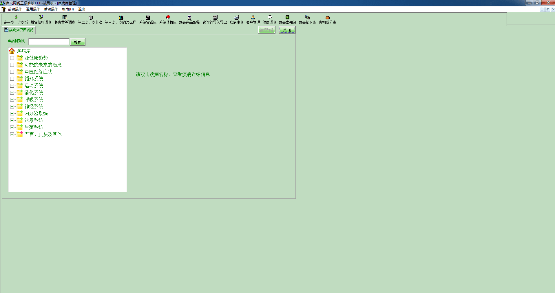 自动配餐王标准版是针对营养师进行营养配餐、膳食调查等工作的需求而设计的一款配餐软件。软件通过精细量化个人配餐,以一天食物为配餐基础,向下延伸,深入浅出,实现人人会配餐。