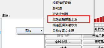 2、打开OBS,在“来源”中添加“龙珠直播答谢水友”