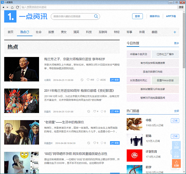您所在的位置:软件中心 »网络应用 »其他应用 »一点资讯(一点资讯电脑版 V4.1.1.1 免费PC版)新版下载