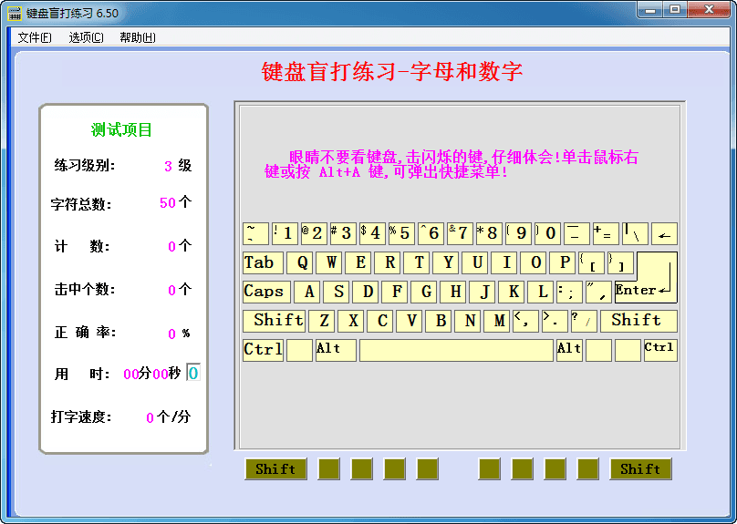 键盘盲打练习是一款免费的打字练习软件,它能有效地帮您提升盲打速度,它不仅仅有打字练习这项基本功能,更拥有语音报键等人性化功能,这是一个强烈推荐的打字练习软件。