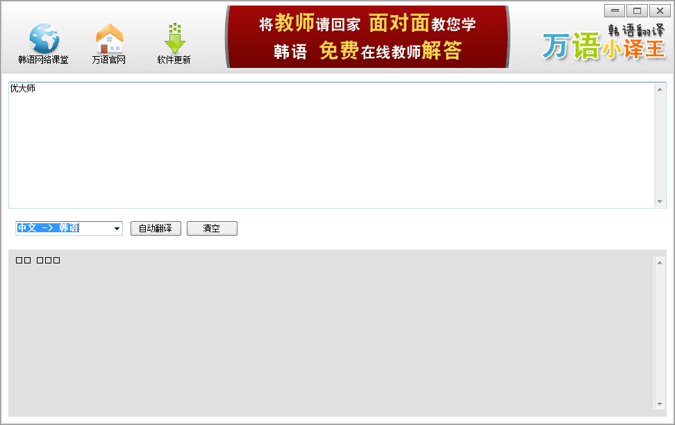万语韩语翻译工具是一款韩语翻译软件,它支持中文和韩语的相互转化,界面简洁,使用方便,非常适合韩语学者。