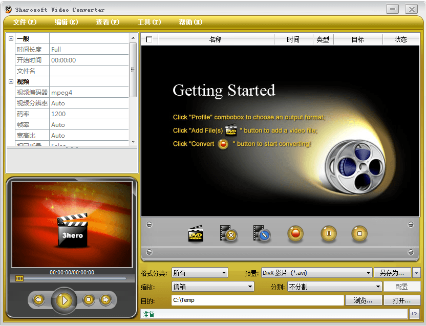 全能视频转换器(3herosoft Video Converter)是一款优秀的视频转换软件,该软件功能强大,简单易用,可以转换几乎所有流行的视频文件格式,可以提取视频文件的音频WMA格式。