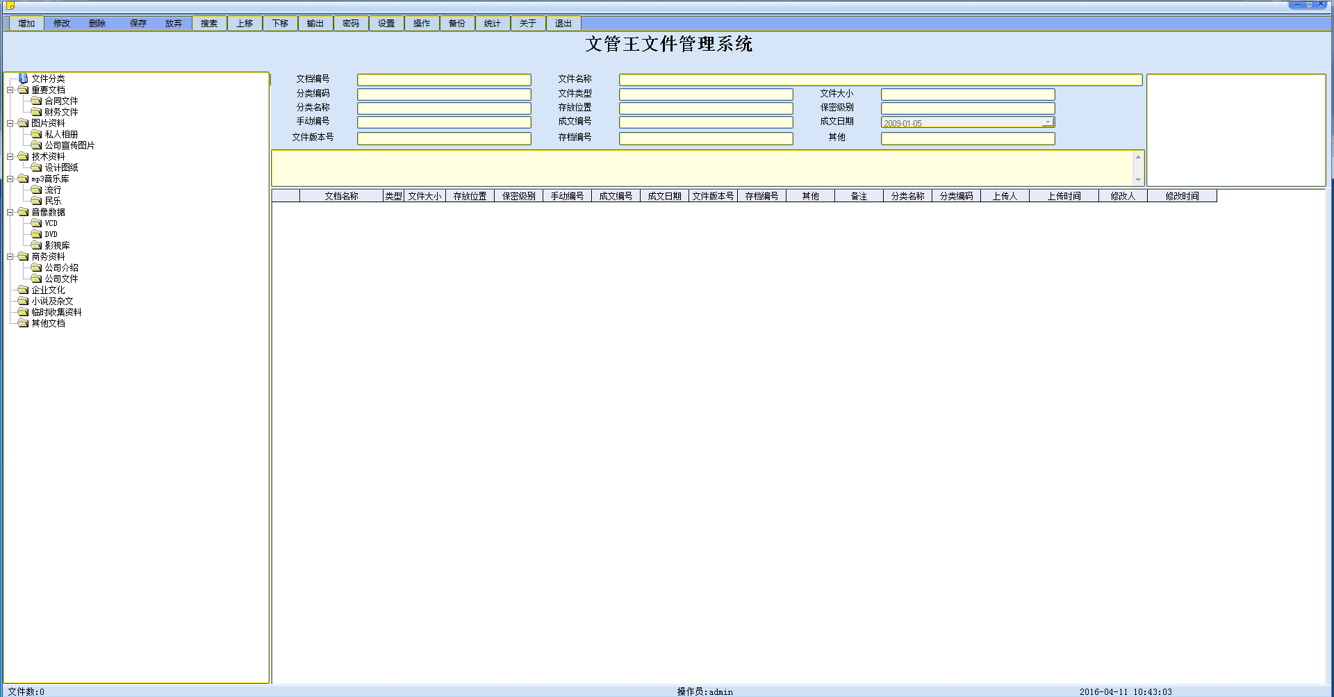 文管王文件管理系统是一款功能强大的文件管理软件。软件持任意文件存储,存取方式从技术和易用性方面都比较强。该系统在技术,易用安全方面大大领先于同类产品,是企业文档管理信息化的首选产品。适合管理海量的办公文件管理、音像资料管理、设计图纸管理、图片资料管理……